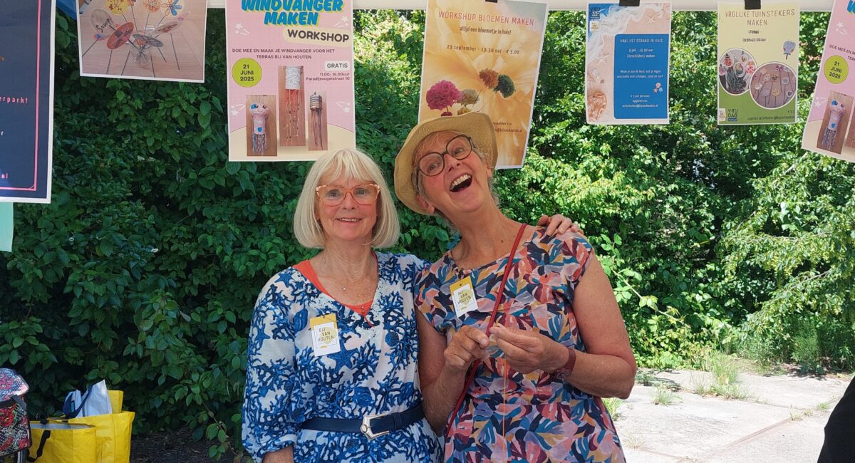 Elke dinsdagochtend is er creatief bij Van Houten. We maken hier decoratie voor bij Van Houten, maar er is ook ruimte voor eigen projecten. Zo zijn er twee wijkbewoners bezig met het upcyclen van textiel! Met gebruikte materialen werken heeft onze voorkeur!