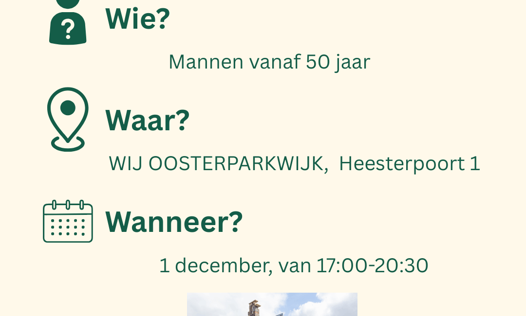 Op maandag 1 december kookt en eet Stichting Mannen met Pannen bij WIJ OOSTERPARKWIJK. Ben of ken jij een man van 50 jaar of ouder? Dan ben je van harte welkom om van 17:00 tot 20:30 uur gratis samen met de studenten van Stichting Mannen met Pannen gezellig te koken en eten.