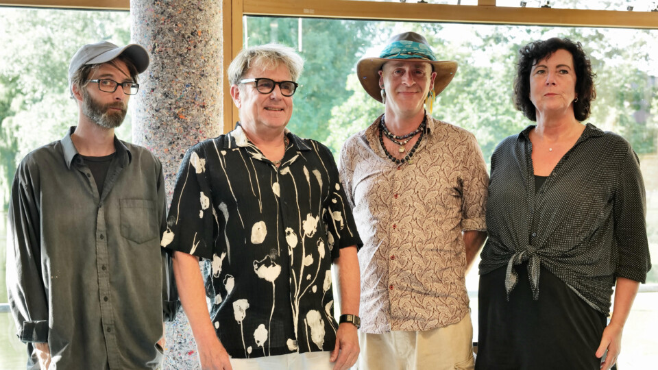 Aan het slot van de bijeenkomst poseerden de drie dichters en de singer-songwriter voor de fotografen – drie in getal. “De helft van het publiek maakt foto’s”, grapte Bart. Maar dat was ietwat overdreven. De zaal was redelijk gevuld. En de aanwezigen hebben een leuke, onderhoudende avond gehad.