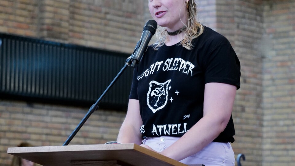 Foto van Esmé van den Boom in de Oosterkerk 2024, gemaakt door Frans Geubel
