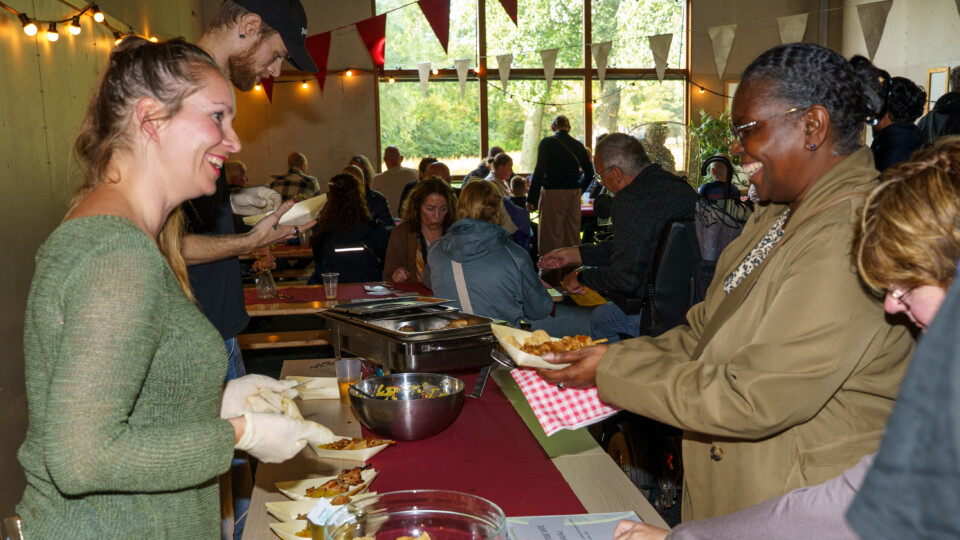Al met al was dit een zeer geslaagd feest met zo’n 180 bezoekers. Het eten dat over was werd in bakjes meegegeven.