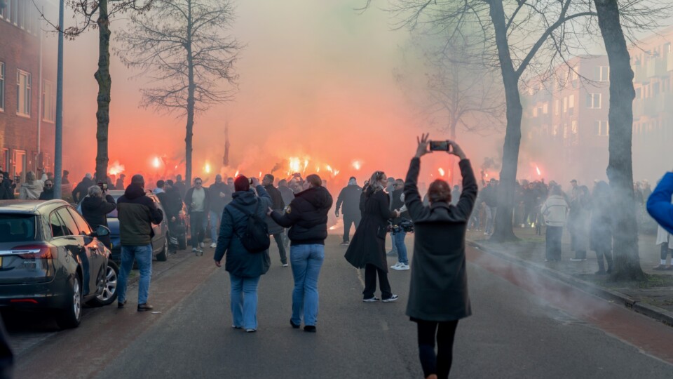 Naast de verschillende activiteiten van FC Groningen werden er vorige week ook tientallen groenwitte herdenkingsvlaggen uitgereikt, met daarop een plattegrond van het oude Oosterparkstadion. Deze vlaggen wapperen ook nu nog op sommige plaatsen. En afgelopen zaterdagmiddag was het dan zover: de ‘corteo‘ (Italiaans voor optocht) ging van start! Vanuit alle kanten stroomden de supporters richting Piet Fransenlaan en Parkzijde om te verzamelen, en om 15.00 uur stroomde de Zaagmuldersweg vol met duizenden deelnemers, richting Damsterdiep. De stoet werd vergezeld van repeterende knallen van heel veel vuurwerk; sfeervol omfloerst door rookbommen en walmende fakkels en verluchtigd met de groenwitte vlaggen. Aan weerszijden stonden de trottoirs vol met Oosterparkers die soms een brok in de keel kregen. ‘Pure nostalgie’, ‘Oude tijden herleven’, ‘Ik krijg er kippenvel van’ en ‘Ik ben trots op de Oosterparkwijk’, zijn zomaar wat uitspraken van toeschouwers. Maar ook: ‘Ik vind het nog steeds jammer dat het stadion weg is. Het gaf sfeer in de wijk en zorgde voor saamhorigheid.’