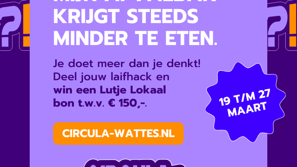Tijdens de Week van de Circulaire Economie (19 t/m 27 maart) laten we met slimme tips, voorbeelden en inspirerende events zien hoe makkelijk circulair leven is. En, hoe leuk: je maakt ook nog eens kans op een Lutje Lokaal Bon t.w.v. € 150,-. Bekijk de laifhacks, de agenda en meer op www.circula-wattes.nl