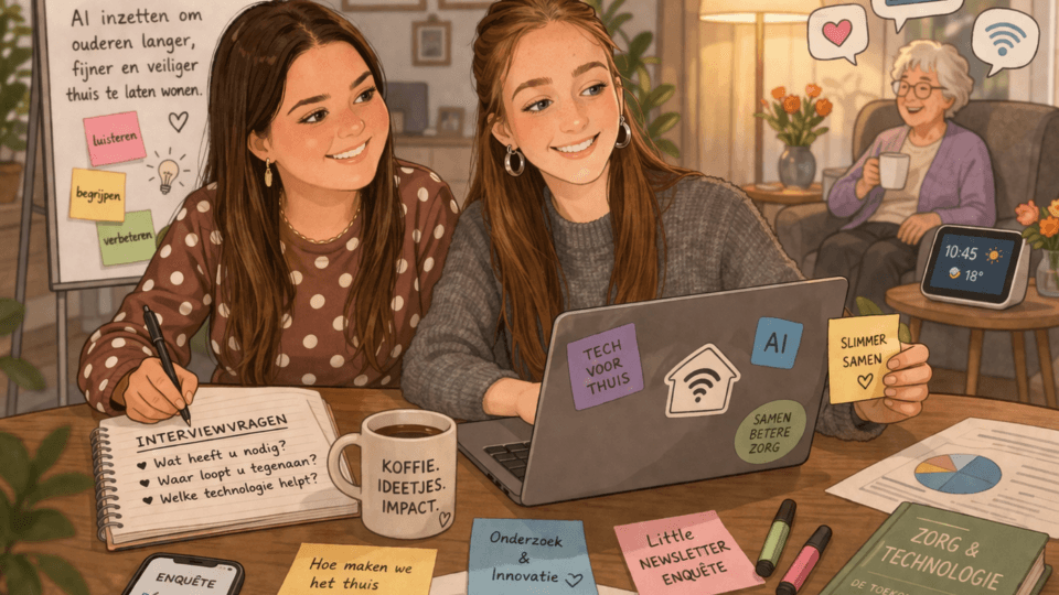 Voor onze opleiding doen wij een onderzoek in opdracht van de gemeente Groningen. Ons onderzoek gaat over het gebruik van technologie en kunstmatige intelligentie (AI) bij thuiswonende ouderen.