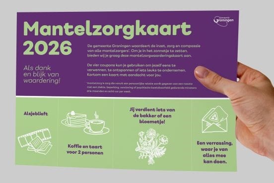 We bieden je daarom een mantelzorgkaart aan als blijk van waardering. Met de coupons van deze kaart kun je leuke dingen doen om even te ontspannen. Voor jonge mantelzorgers zijn er bioscoopbonnen.